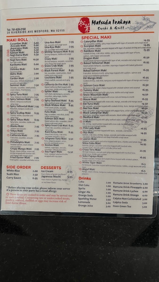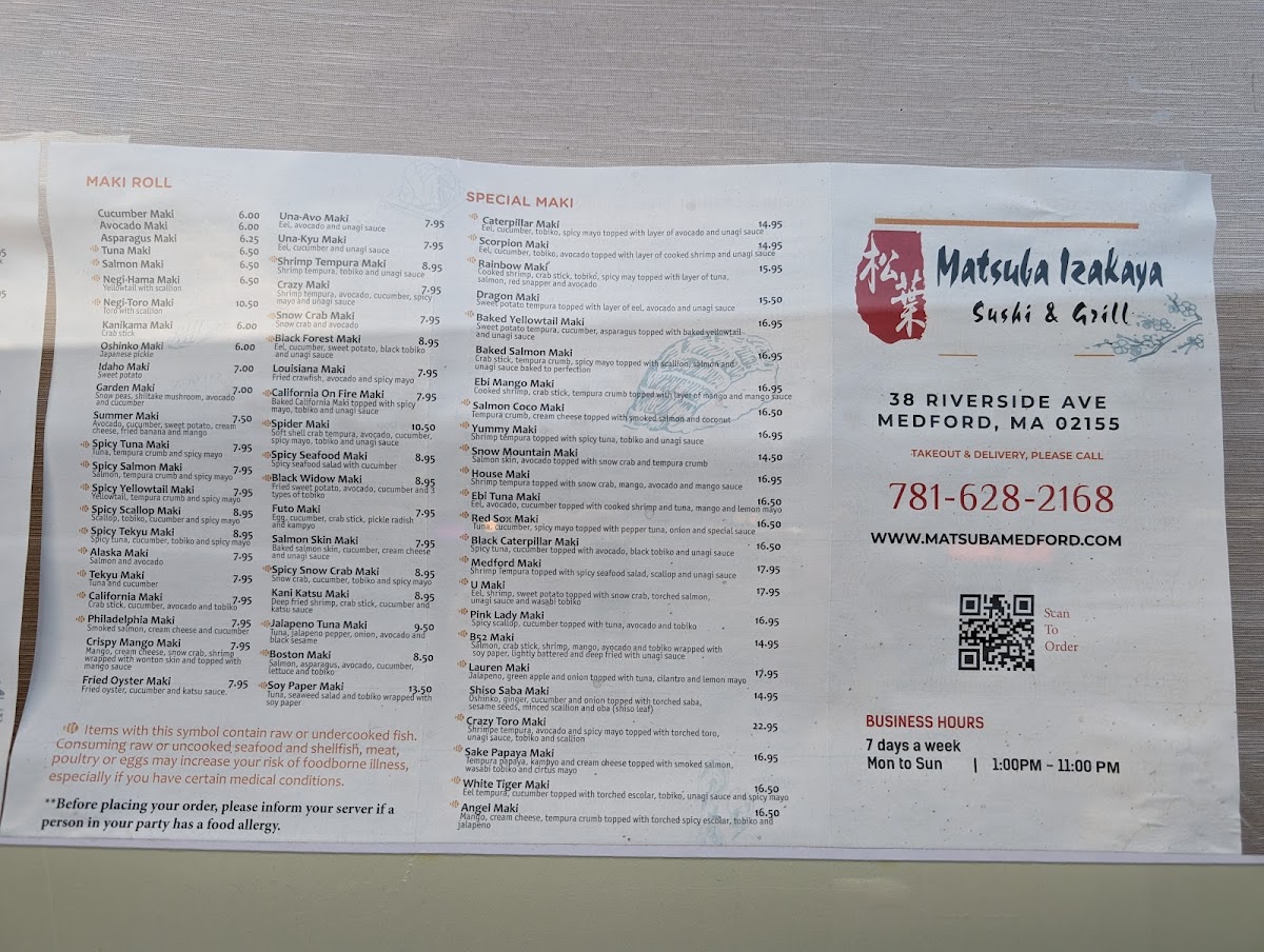Matsuba Izakaya Menu